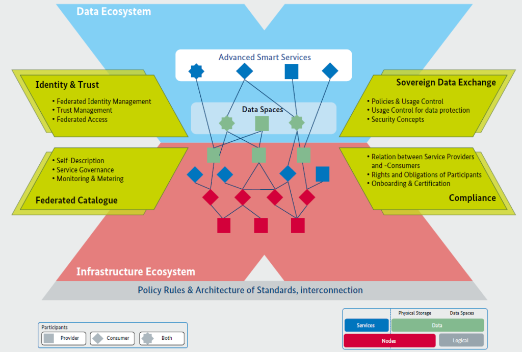 Abb: High-Level Gaia-X Architektur (Quelle: BMWi und GAIA-X – GAIA-X: Technical Architecture (data-infrastructure.eu)